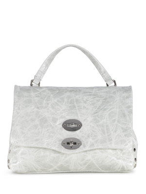 Borsa Zanellato " Postina S Jagger" realizzata in pelle spazzolata di colore Ghiaccio. Effetto di colore Verde Chiaro. Inserti in metallo Argento. Dettaglio " Borchie" applicate ai lati. Manico superiore. Patta con chiusura, girello in metallo. Interno foderato. Patch logo in pelle applicato all'interno. Tasca interna a parete con zip. Doppio scomparto. Può essere indossata a mano, spalla o a tracolla. Tracolla in pelle regolabile, rimovibile. Altezza 20cm, Larghezza 29cm, Profondità 15cm Manico 11cm 100% Pelle Made in Italy