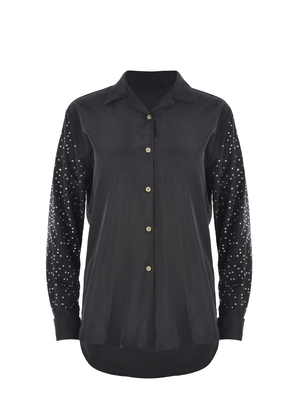 Camicia Alysi in misto modal Grigio antracite. Applicazioni strass sulle maniche. Chiusura con bottoni sul davanti. Polsini con bottoni. 70% modal 30% poliestere Made in Italy