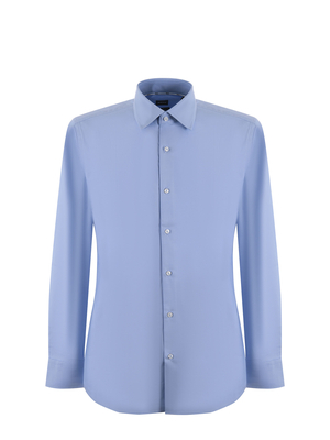 Camicia Boss in cotone stretch Celeste. Colletto classico. Chiusura con bottoni. Manica lunga. Polsi regolabili con bottoni. Profilo a contrasto. Tessuto easy iron. Slim fit.Misura in foto 3998% cotone 2% elastene
