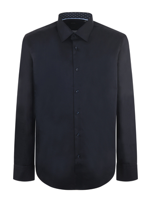 Camicia Boss in cotone Blu notte. Collo classico. Chiusura con bottoni. Manica lunga. Polsino regolabile con bottoni. Regular fit. Easy iron.Misura in foto 39100% cotone