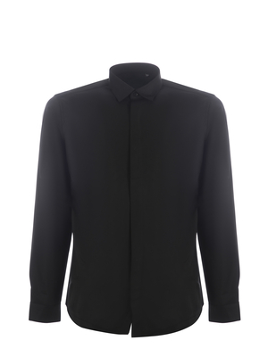 Camicia Costumein in lana vergine Nera. Colletto classico. Maniche lunghe. Polsini con bottone. Chiusura con bottoni nascosti sul davanti. Regular fit. 100% WVMade in Italy