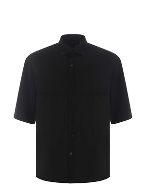 Camicia Costumein " Stefano" realizzata in fresco lana di colore Nero. Colletto classico a punta. Maniche corte. Tasca applicata sul petto. Chiusura con bottoni, davanti. Regular fit.100% Lana Vergine Made in Italy
