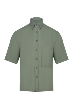 Camicia Costumein realizzata in lana di colore Verde. Colletto classico. Maniche corte. Taschino sul petto. Chiusura con bottoni sul davanti.100% lana vergine Made in Italy