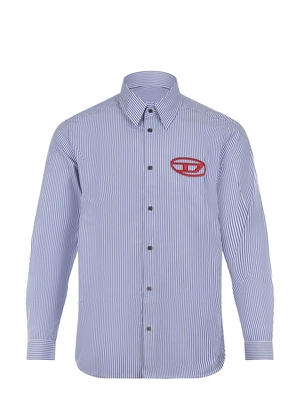 Camicia Diesel in cotone blu e bianco. Maniche lunghe. Polsini con bottone. Logo ricamato sul petto a contrasto. Chiusura con bottoni.100% cotone