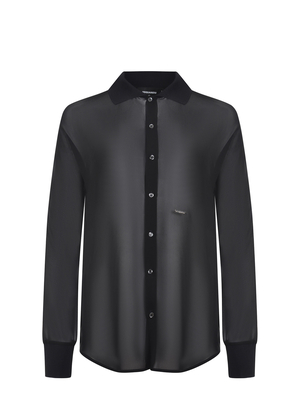 Camicia Dsquared 2 realizzata in seta di colore Nero. Interamente trasparente. Colletto a camicia a costine. Maniche lunghe a costine. Chiusura con bottoni. Logo in metallo di colore Argento ricamato sul davanti.100% seta Made in Italy
