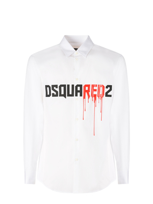 Camicia Dsquared2 realizzata in popeline di cotone di colore Bianco. Colletto. Maniche lunghe. Polsi con bottone. Lettering logo "Dsquared2" a contrasto Nero e Rosso. Chiusura con bottoni, davanti. Fondo stondato. 100% CotoneMade in Italy