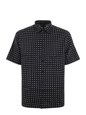 Camicia Emporio Armani in misto lyocell e cotone Nero. Loghi "eagle" a contrasto su tutta la superficie. Colletto classico. Manica corta. Fondo quadrato. Vestibilità over.Misura in foto M56% lyocell, 44% cotone