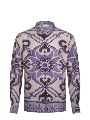 Camicia Family first realizzata in ramiè Multicolor. Colletto classico. Maniche lunghe. Polsini con bottone. Chiusura con bottoni sul davanti. Stampe modello " Amalfi". Etichetta logo a contrasto sul polsino sinistro.84% ramiè 16% poliammide Made in Italy