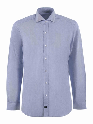 Camicia Fay in cotone fantasia righe pari Bianco/ Blu. Collo francese. Chiusura con bottoni. Manica lunga. Polso con bottone. Misura in foto 40100% cotone
