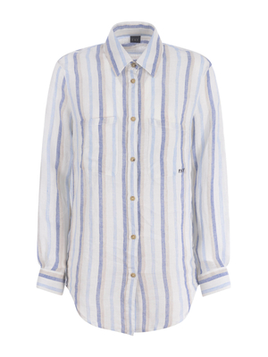 Camicia Fay in lino di colore Bianco. Colletto. Maniche lunghe. Polsi con bottoni. Motivo righe a contrasto all-over. Tasche applicate ai lati. Lettering logo " Fay" ricamato sulla tasca. Chiusura con bottoni davanti. 100% Lino Made in Romania