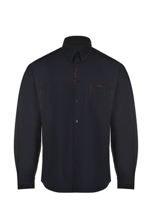 Camicia Marni realizzata in Lana di colore Blu navy. Maniche lunghe. Polsini con bottoni. Chiusura frontale con bottoni. Colletto classico. Taschino sul petto. Logo ricamato sul taschino a contrasto. Ricami realizzati a mano a contrasto sul davanti. Taglio vivo laterale e retro di colore Nero.100% lana vergine