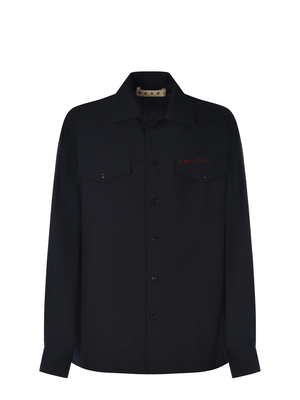Camicia Marni realizzata in lana vergine di colore Nero. Colletto. Maniche lunghe. Polsi con due bottoni. Tasche con patta applicate sul petto. Lettering logo " Marni" ricamato a contrasto di colore Rosso sulla tasca. Chiusura con bottoni, davanti. Regular fit.100% Lana Vergine