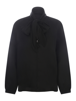 Camicia Max Mara "Albenga" realizzata in seta di colore Nero. Collo con fiocco in twill di pura seta. Maniche lunghe. Maniche reglan. Polso con bottone. Scollo a punta, tre bottoncini. Linea morbida.100% SetaMade in Italy