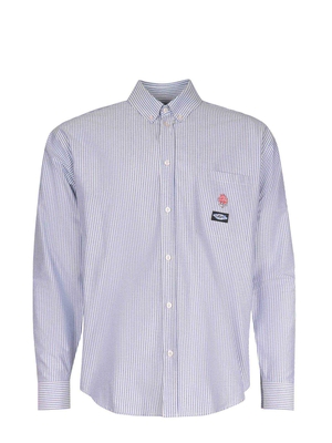 Camicia MSGM realizzata in popeline di cotone di colore Bianco. Motivo a righe a contrasto Celeste. Colletto con bottoncini. Maniche lunghe. Polsi con bottoni. Patch logo a contrasto applicato sotto lo scollo sul retro.100% Cotone Made in Italy ...