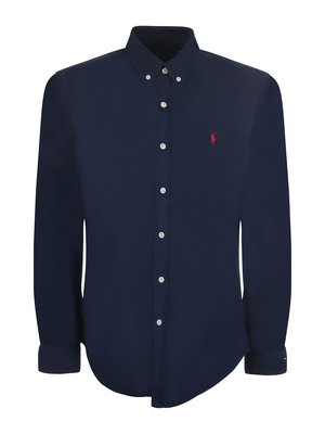 Camicia Polo Ralph Lauren in twill di cotone Blu scuro. Colletto button down. Manica lunga. Polsi con bottone. Chiusura con bottoni. Logo frontale ricamato. Cannoncino sul retro. Slim fit. Misura in foto M100% cotone