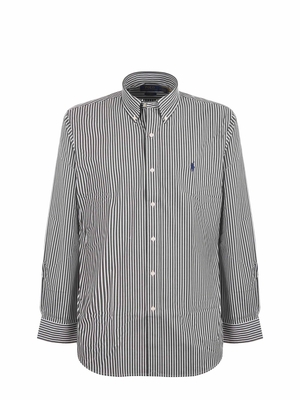 Camicia Polo Ralph Lauren in popeline di cotone fantasia righe Verde scuro/ Bianco. Collo button down. Manica lunga. Polso con bottone. Chiusura con bottoni. Cannoncino sul retro. Custom fit. Logo frontale ricamato. Misura in foto M100% cotone