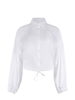 Camicia Solotre in cotone Bianco.Maniche lunghe. Polsini con elastico.Chiusura con bottoni sul davanti. Sul fondo laccetto regolabile.100% cotone Made in Italy