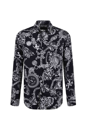 Camicia Versace Jeans Couture in cotone operato Nero fantasia "baroque" grigio su tutta la superficie. Colletto classico. Chiusura con bottoni coperta da fintone. Manica lunga. Polsi con bottoni. Misura in foto 44100% cotone