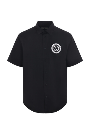 Camicia Versace Jeans Couture in popeline di cotone Nero. Logo frontale. Colletto classico. Chiusura con bottoni. Manica corta. Regular fit. Misura in foto 46100% cotone