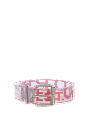 Cintura Philosophy di Lorenzo Serafini in pelle Trasparente. Logo "Philosophy" a contrasto Rosso. Fibbia in metallo Argento antico. Regolabile. 100% Pelle