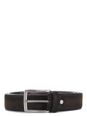 Cintura The Jack Leathers in camoscio Marrone scuro effetto vintage. Aree spazzolate. Fibbia in metallo antichizzato. Regolabile. Altezza 3.5cm.100% pelle