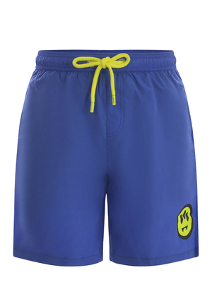 Costume Barrow realizzato in nylon di colore Bluette. Elastico in vita con coulisse a contrasto. Tasche laterali. Logo " Smile" applicato sul fondo di lato. Maxi lettering logo " Barrow" a contrasto sul retro. Slip interno.100% Poliammide