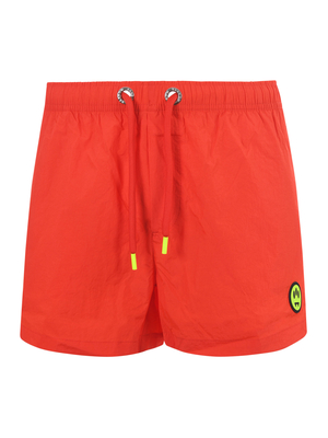 Costume Barrow in nylon Corallo. Elastico in vita con coulisse interna. Tasche a filo. Tasca posteriore con pattina. Patch logo frontale gommato. Misura in foto S100% poliammide