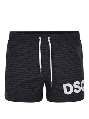 Costume Dsquared 2 in tessuto tecnico di colore Nero. Elastico in vita. Coulisse regolabile a contrasto. Stampa logo all-over a contrasto. Lettering logo a contrasto di colore Bianco sul davanti e sul retro. Tasche laterali.95% poliestere 5% elastene Made in Italy