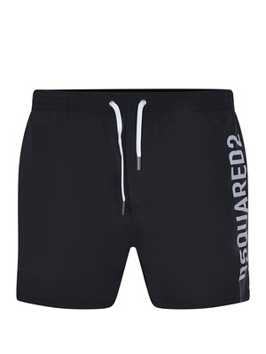 Costume Dsquared 2 in tessuto tecnico di colore Nero. Elastico in vita. Coulisse regolabile a contrasto. Lettering logo a contrasto di colore Bianco sul lato. Tasche laterali.92% poliammide 8% elastene Made in Italy