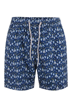 Costume MC2 Sainth Barth in nylon Blu scuro/Celeste. Stampa "tequila stbarth" su tutta la superficie. Elastico in vita con coulisse. Fodera interna in rete. Tasche a filo. Tasca sul retro con bottone.Misura in foto M100% poliestere