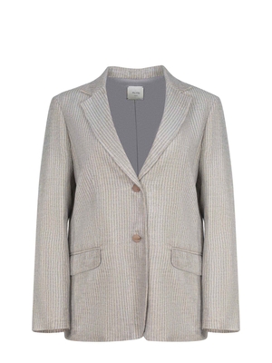 Giacca Alysi realizzata in velluto di colore Tortora chiaro.Motivo a costine di veluto.Rever classico.Monopetto.Chiusura frontale con due bottoni.Tasche con patta laterali.Maniche lunghe.Spacco sul retro.Foderata.100% viscosaMade in Italy