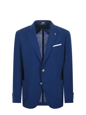 Giacca Berry& Brian in tecno lana Blu. Rever classico. Chiusura con 2 bottoni. Taschino con finta pochette. Tasche a toppa. Doppio spacco sul retro. Sfoderata. Misura in foto 4854% poliestere, 44% lana, 25% elastene