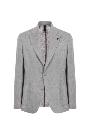 Giacca Bottega Marchigiana in misto lino e cotone color Tortora. Revers classico. Maniche lunghe. Polsi con quattro bottoni. Taschino sul petto. Chiusura con due bottoni. Tasche a toppa. Tasche interne. Doppio spacco sul retro. Sfoderata. Decostruita. 55% lino, 45% cotone