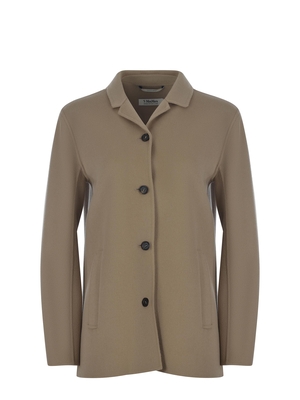 Giacca camicia S Max Mara "Fiabe" realizzata in lana vergine di colore Beige. Collo camicia.Maniche lunghe. Chiusura con bottoni, davanti. Cintura coordinata. Tasche a filo laterali.100% Lana VergineMade in Italy