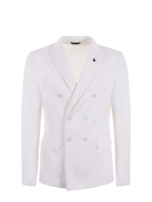 Giacca doppiopetto Alessandrini in jersey a nido d'ape Bianco. Rever a lancia. Polsi con bottoni. Taschino sul petto. Chiusura doppiopetto. Tasche con pattina. Doppio spacco sul retro. Foderata. Misura in foto 4896% Poliestere, 4% elastene