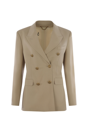 Giacca doppiopetto Golden Goose realizzata in gambardine di lana vergine di colore Beige. Revers a lancia. Maniche lunghe. Polsi con quattro bottoni, Dorati. Tasca a filo sul petto. Doppiopetto. Chiusura con bottoni davanti. Tasche con patta laterali. Foderata. Fodera con lettering stampato. Doppia stellina Dorata sotto lo scollo sul retro. Doppio spacco sul retro. Regular fit. Fodera 64% Viscosa, 36% Rayon Fodera maniche 52% Viscosa, 48% Acetato 100% Lana Vergine Made in Italy