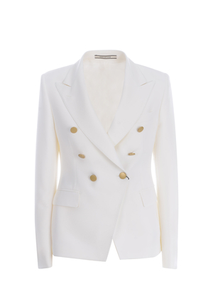 Giacca doppiopetto Tagliatore "J-Alycia" realizzata in cady di colore Bianco. Collo con rever a punta. Maniche lunghe. Polsi con bottoni in metallo Dorato. Tasca a filo sul petto. Doppiopetto. Chiusura con bottoni in metallo Dorato. Tasche laterali con patta. Foderata. Spacchetto sul retro. Vestibilità slim.87% Poliestere, 13% Elastan Made in Italy