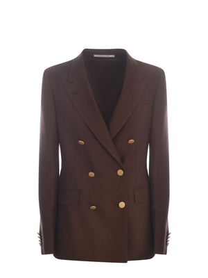 Giacca doppiopetto Tagliatore "J-Parigi" realizzata in lino di colore Marrone. Rever a punta. Maniche lunghe. Polsi con quattro bottoni, in metallo Dorato. Taschino a filo sul petto. Doppiopetto. Chiusura con bottoni Dorati. Tasche laterali con patta. Foderata. Spacchetto sul retro. Vestibilità slim. Fodera 100% Cupro 100% Lino Made in Italy