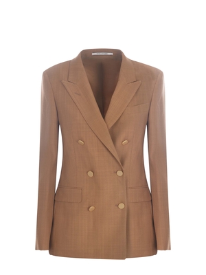 Giacca doppiopetto Tagliatore "J-Parigi" realizzata in misto viscosa di colore Cammello. Rever a punta. Maniche lunghe. Polsi con quattro bottoni, in metallo Dorato. Taschino a filo sul petto. Doppiopetto. Chiusura con bottoni Dorati. Tasche laterali con patta. Foderata. Spacchetto sul retro. Vestibilità slim. Fodera 100% Cupro 77% Viscosa, 22% Nylon, 1% Luocell Made in Italy