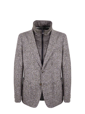 Giacca Hugo boss in jersey di lana e cotone fantasia pied de poule Beige e Bianco. Rever classico. Taschino a filo sul petto. Tasche a toppe frontali. Chiusura con due bottoni. Davantivo in nylon trapuntato Tortora staccabile. Chiusura con doppio cursore. Spacco centrale sul retro. Tasche interne. Maniche foderate. Slim fit Misura in foto 5038% cotone 38% lana 24% poliestere fodera 93% poliestere 7% polipropilene