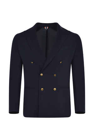 Giacca New York Resident realizzata in misto lana di colore Blu notte. Doppiopetto. Rever classico. Maniche lunghe. Polsini con bottone. Chiusura con bottoni Dorati sul davanti. Taschino sul petto. Tasche laterali.98% lana 2% elastene Made in Italy