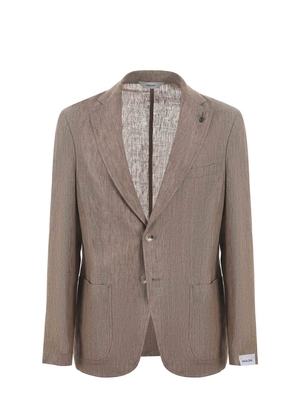 Giacca Paoloni in misto cotone e lino color Cammello. Rever classico. Spilla iconica sul rever. Chiusura con 2 bottoni. Taschino. Tasche a toppa. Impunture in tono. Doppio spacco sul retro. Sfoderata. Decostruita. Misura in foto 4855% cotone, 45% lino ...