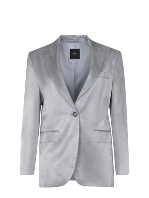 Giacca Pinko " For You" realizzata in misto lino di colore Grigio. Monopetto. Maniche lunghe. Polsini con spacchetto. Lavorazione fiammata dona alla texture del capo una mano irregolare. Spallacci imbottiti. Collo a rever. Taschino a filetto. Tasche con patta sui fianchi. Foderata. Chiusura con bottone singolo. Spacco centrale sul retro.43% viscosa 32% lino 25% cotone Made in Italy