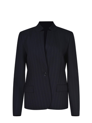 Giacca Pinko "Kebab" realizzata in misto lana di colore Blu notte.Motivo gessato.Monopetto.Collo a rever alzato.Tasche laterali con patta.Maniche lunghe.Polsini con bottoni.54% poliestere 44% lana 2% elasteneMade in Italy