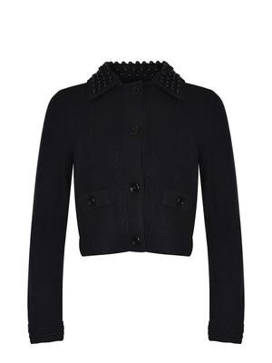 Giacca Pinko " Molise" realizzata in misto lana di colore Nero. Coletto a camicia con perle tono su tono ricamate. Chiusura frontale con bottoni. Maniche lunghe. Tasche sul davanti con bottoni. Lettering logo sul retro del colletto a contrasto.62% acrilico 28% poliestere 10% lana