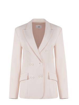 Giacca Manuel Ritz in fresco lana di colore Rosa. Collo con rever in raso a contrasto Nero. Maniche lunghe. Chiusura monopetto con un bottone. Tasche a filo di lato. Spacchetto sul retro.100% Lana Vergine Made in Italy ...