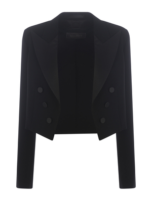 Giacca spencer Max Mara " Diletta" realizzata in cady di colore Nero. Collo con rever in raso lucido. Maniche lunghe. Polsi con tre bottoni tono su tono, uno logato. Doppiopetto. Bottoni ricoperti in raso lucido. Foderata. Fodera 65% Acetato, 35% Poliestere 70% Triacetato, 30% Poliestere Made in Italy Abbinata ai pantaloni " Amedea" art. 2311360337600394-003