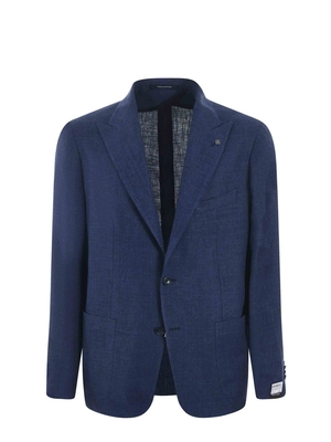 Giacca Tagliatore in hopsack di lino e lana Blu. Rever a lancia. Tasche a toppa. Taschino sul petto. Tasche interne. Spilla iconica sul rever. Chiusura a 2 bottoni. Polsi con bottoni. Doppio spacco sul retro. Sfoderata. Decostruita. Misura in foto 5060% lino, 40% lana vergine
