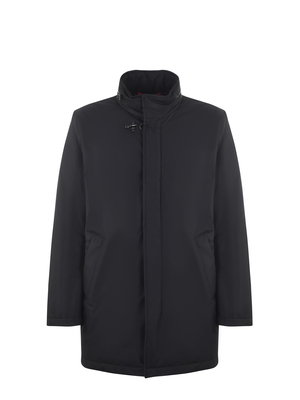 Giaccone Fay in gabardine di microfibra Nera. Imbottito con ovatta tecnica. Collo alto con gancio iconico al sottogola. Cappuccio estraibile. Tasche frontali inserite. Coulisse al punto vita. Chiusura con zip e bottoni a pressione. Misura in foto M100% poliestere Imbottitura: 70% poliestere, 30% polietilene