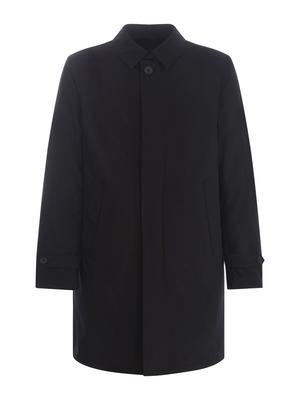 Giaccone Herno in nylon di colore Nero. Collo camicia con gancio. Maniche lunghe. Dettaglio bottoni alle maniche. Chiusura con bottoni nascosti. Tasche a filo laterali. Patch logo applicato di lato. Fodera 100% Nylon100% PoliestereMade in Romania
